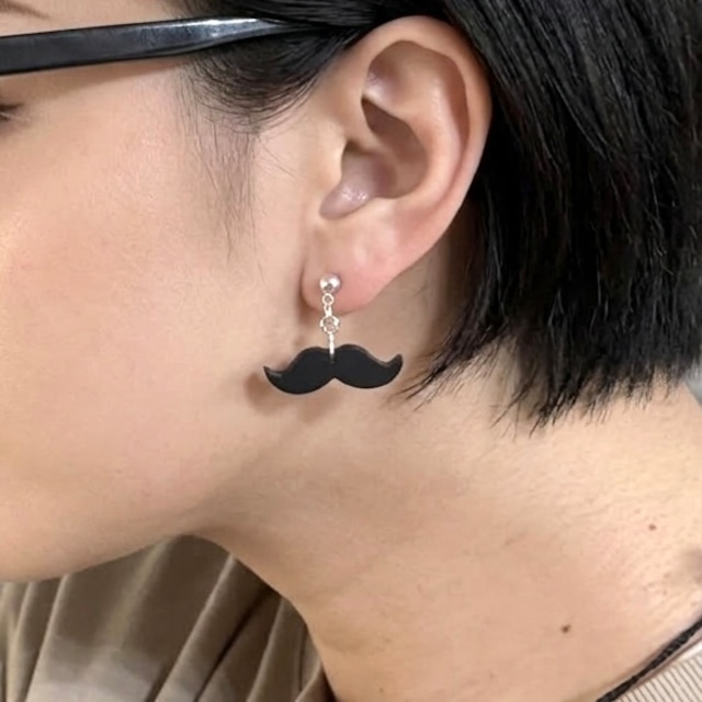 ヒゲモチーフのピアスとイヤリングになります。 イヤリングはネジ式バネイヤリング ピアスはフック型となってます。 樹脂製金具はピアス型とノンホールピアスになります。