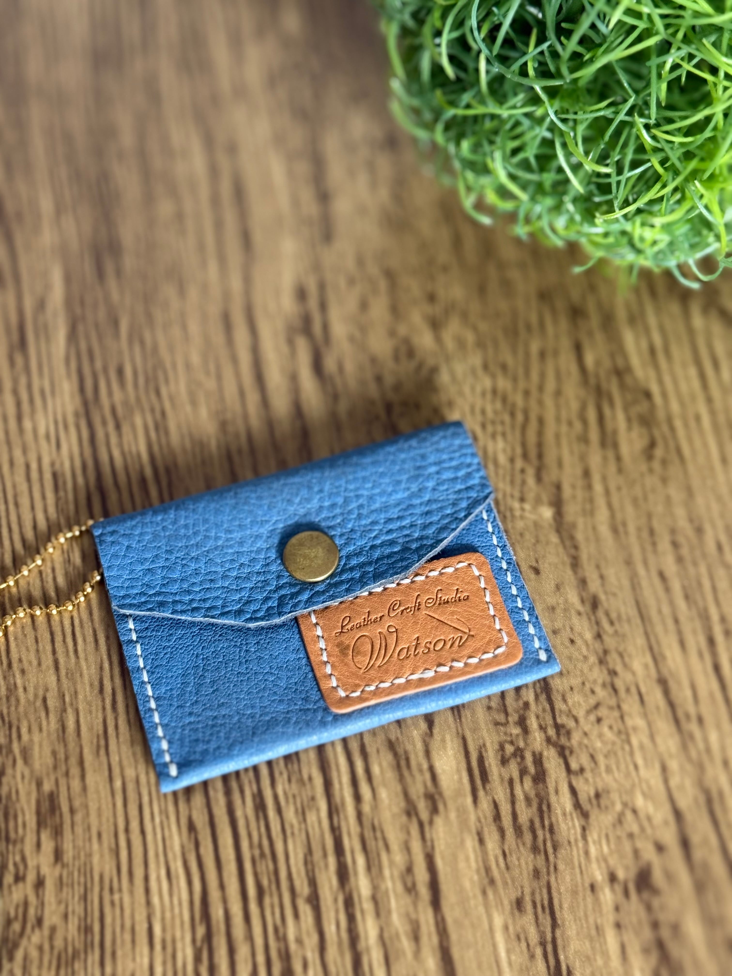 家系ラーメン屋さんサービス券ケース: 鹿革ライトブルー