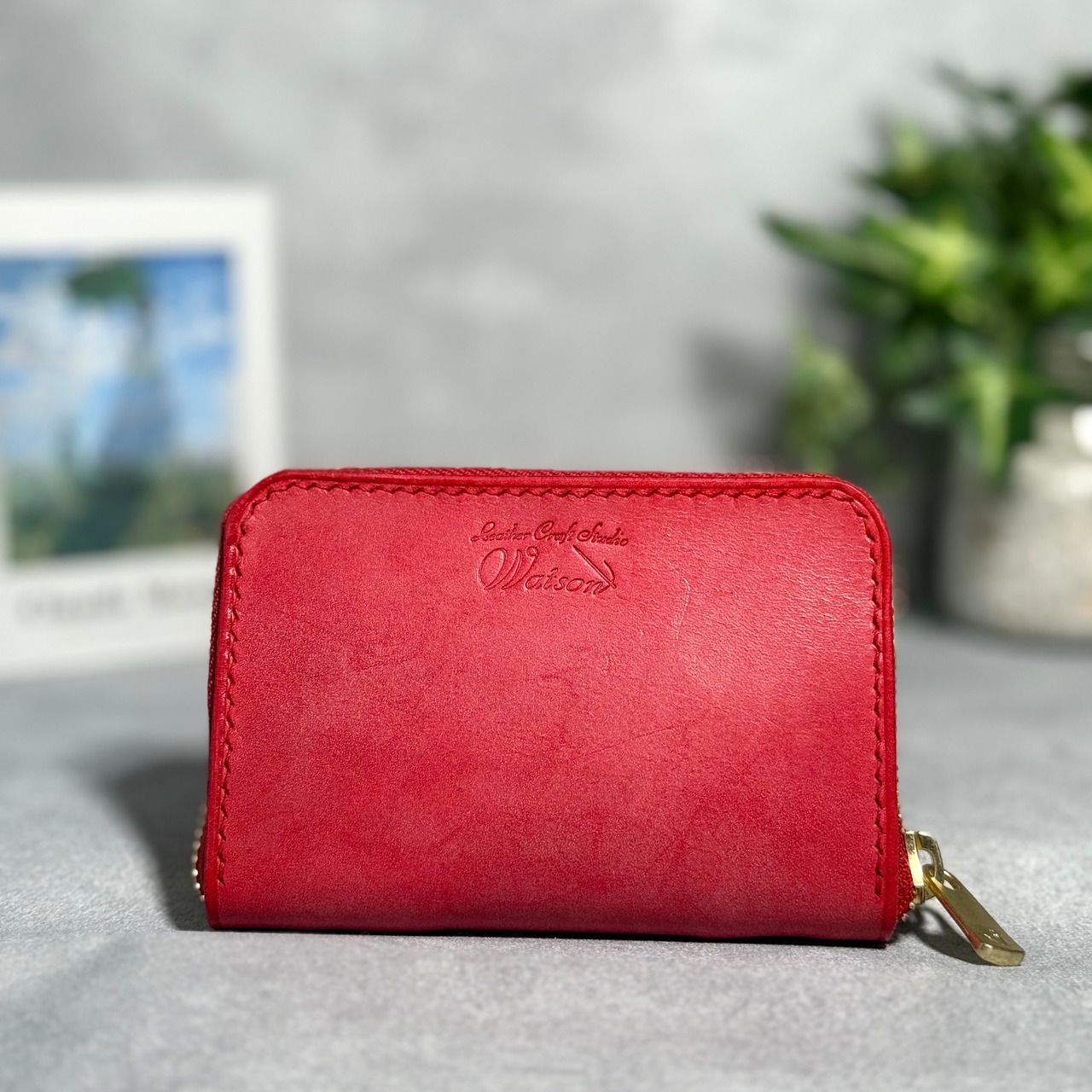 お札を折らずに収納 ロロマレッドのラウンドファスナーミニウォレット