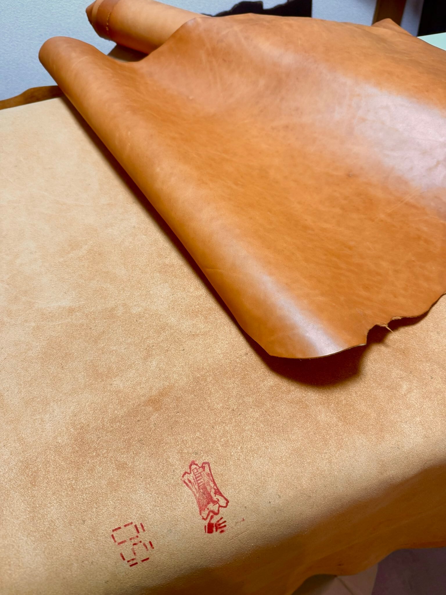 基本的に内側にはマウスピースの保護のためヌバックかスエードを取り付けていますが、革の質感によって全て同じ革で製作する事もできます。画像の物は全て同じ牛革で仕上げました。