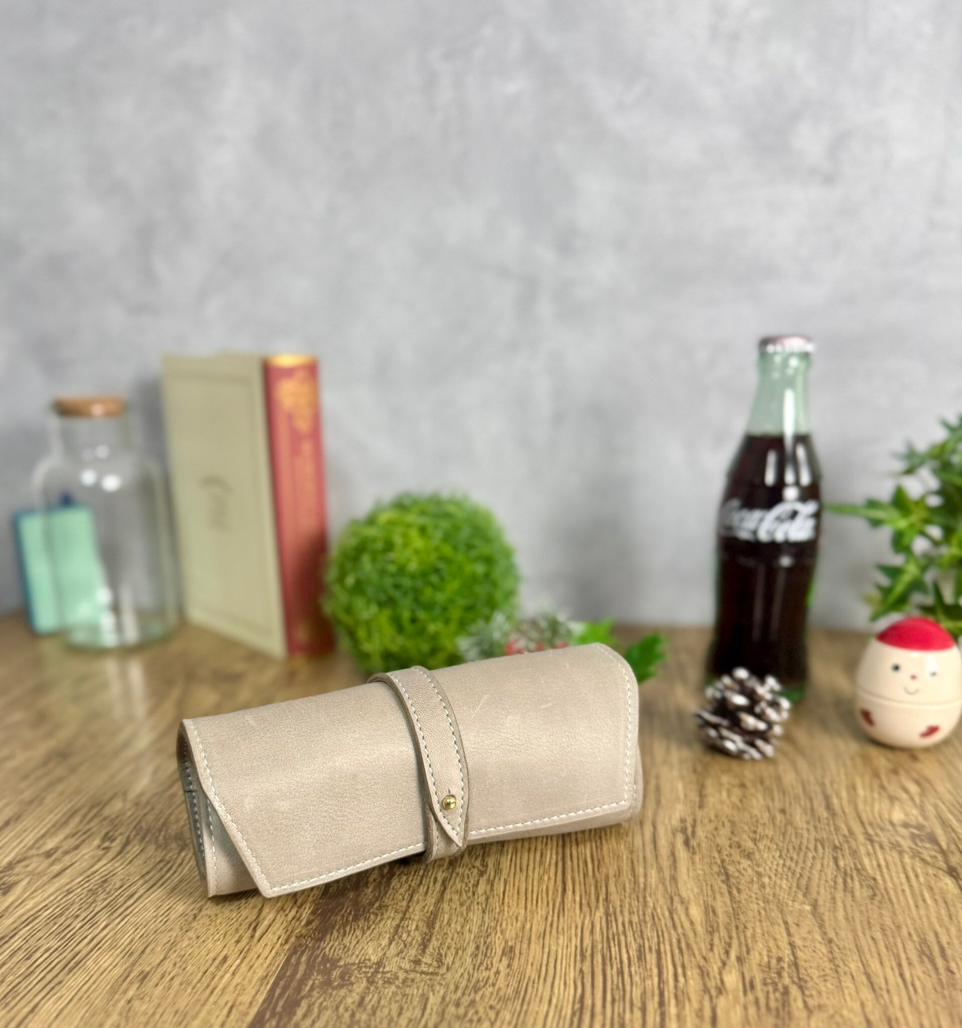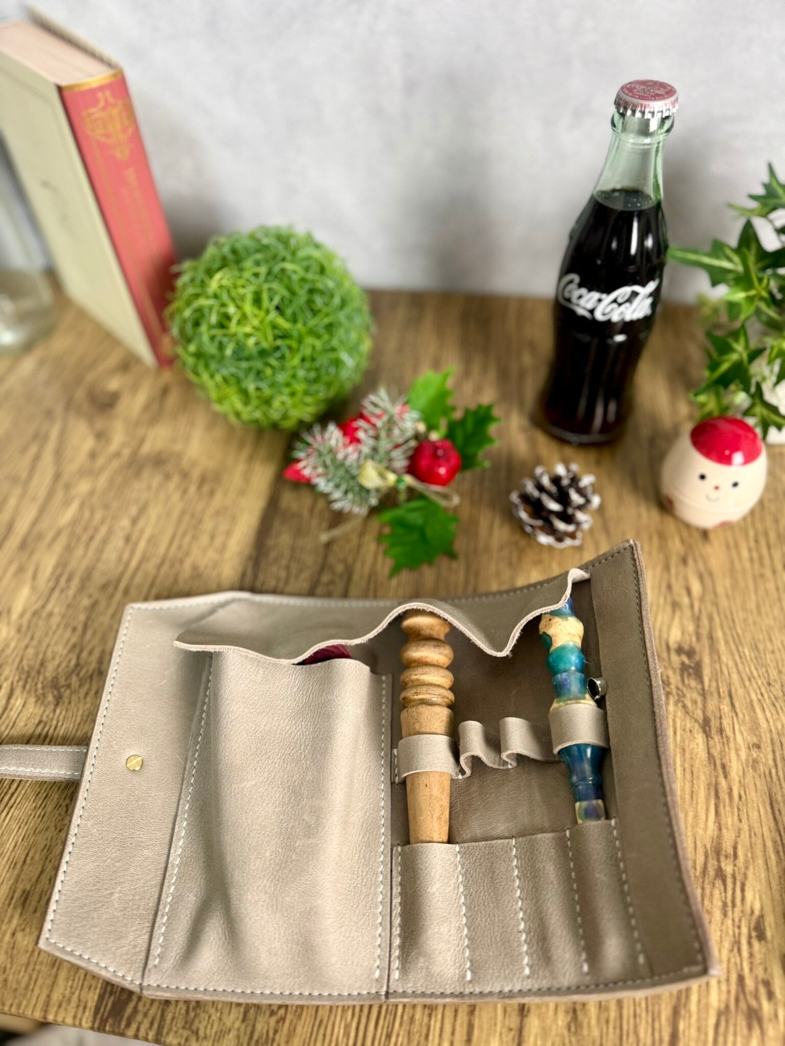 シーシャのマウスピースが3本とネックストラップが入る巻いて留めるタイプのレザーケースです。
