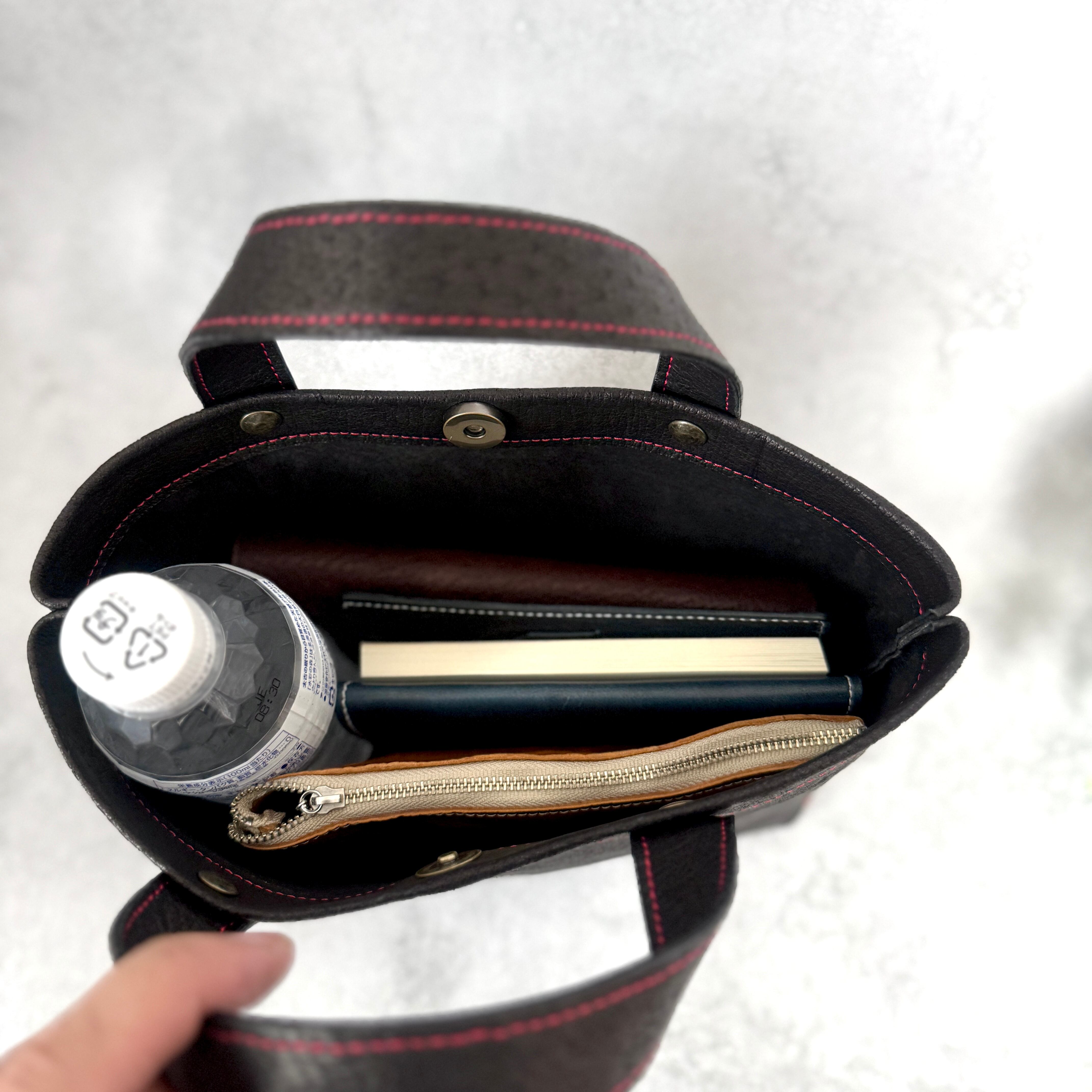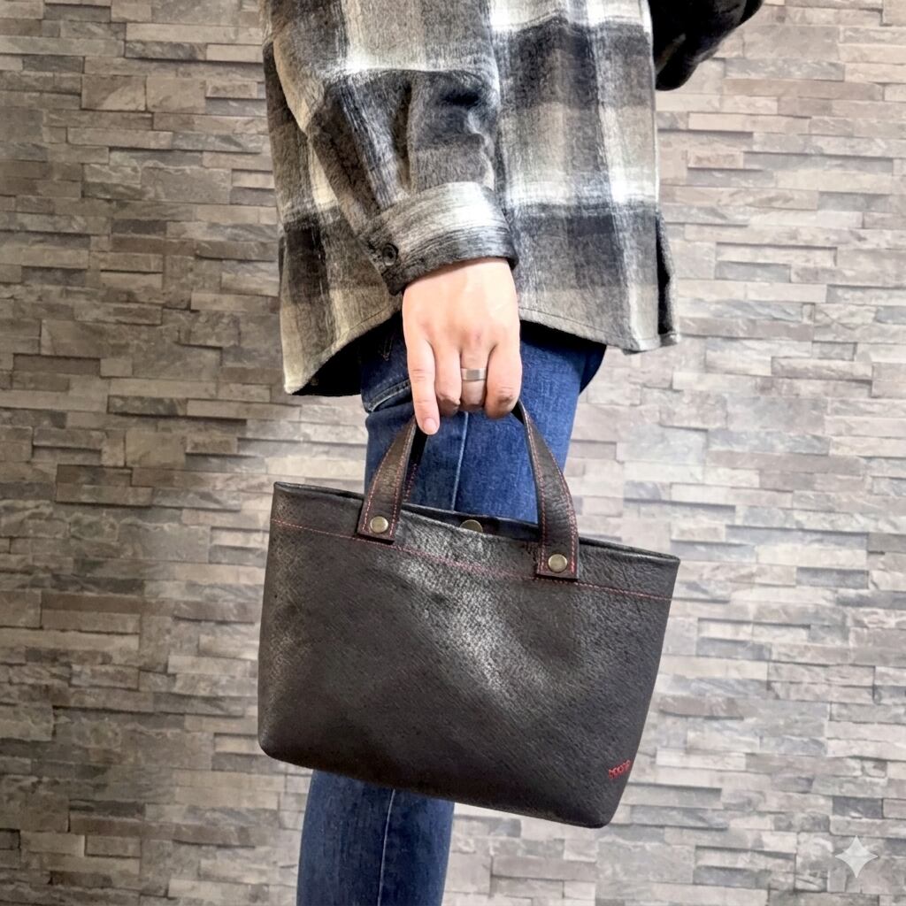 必要なものだけを気軽に持ち歩ける、猪革のミニトートバッグ。