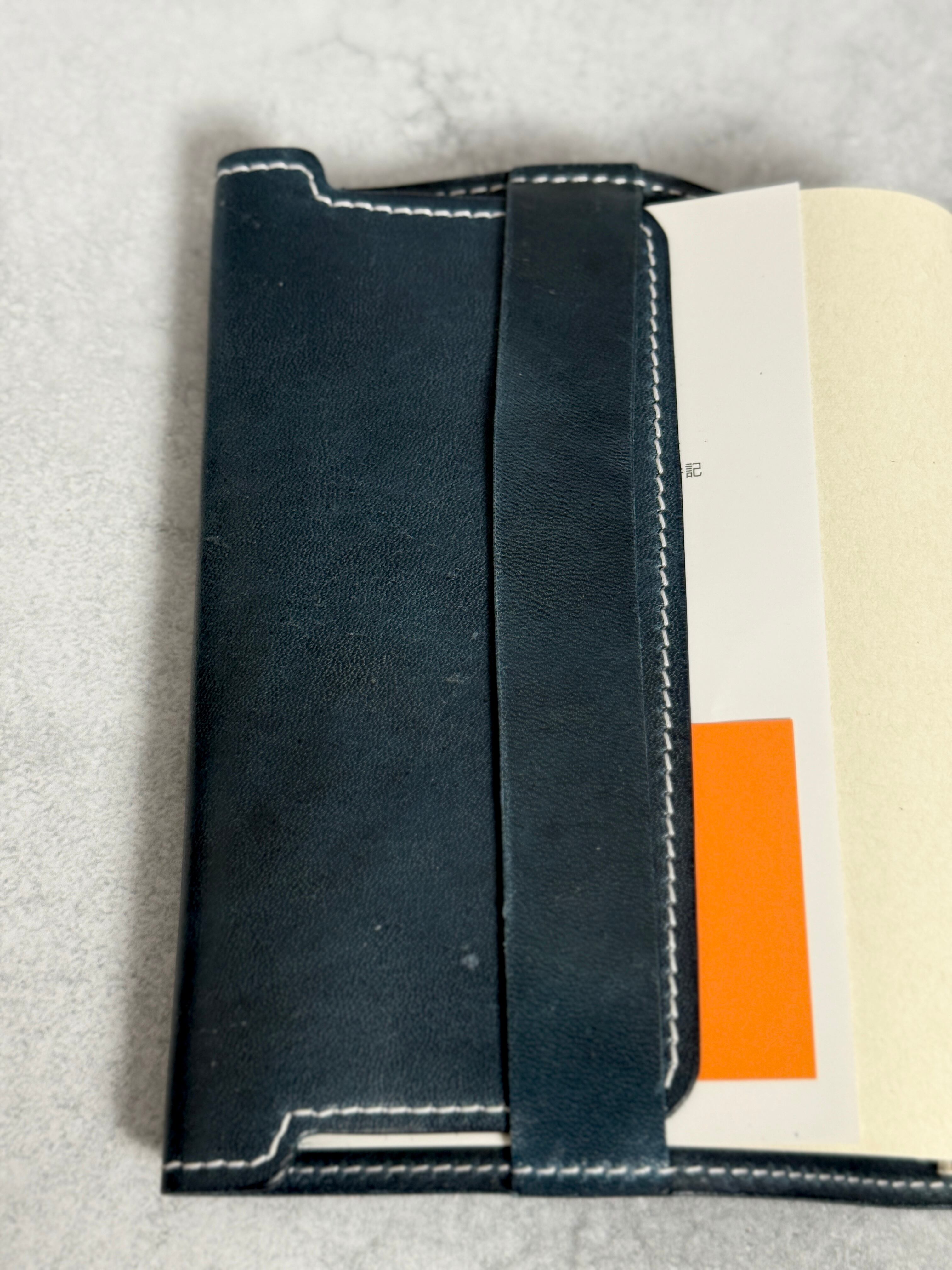 馬革文庫本カバー|経年変化が美しいネイビー