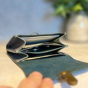 小銭も振ってもこぼれることなく、安心して収納出来ます。ポケットにもすっぽり入る便利なコンパクトウォレットになってます。