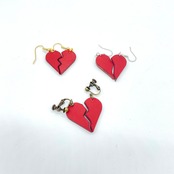 割れたハートモチーフの本革使用ピアス&イヤリングです。