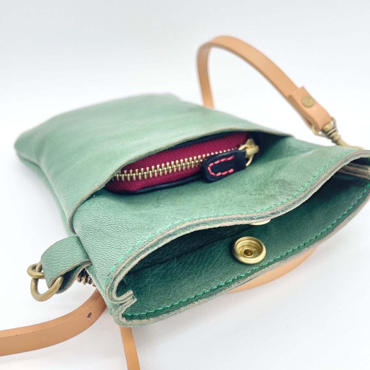 山羊革を使用したスマホポーチです。